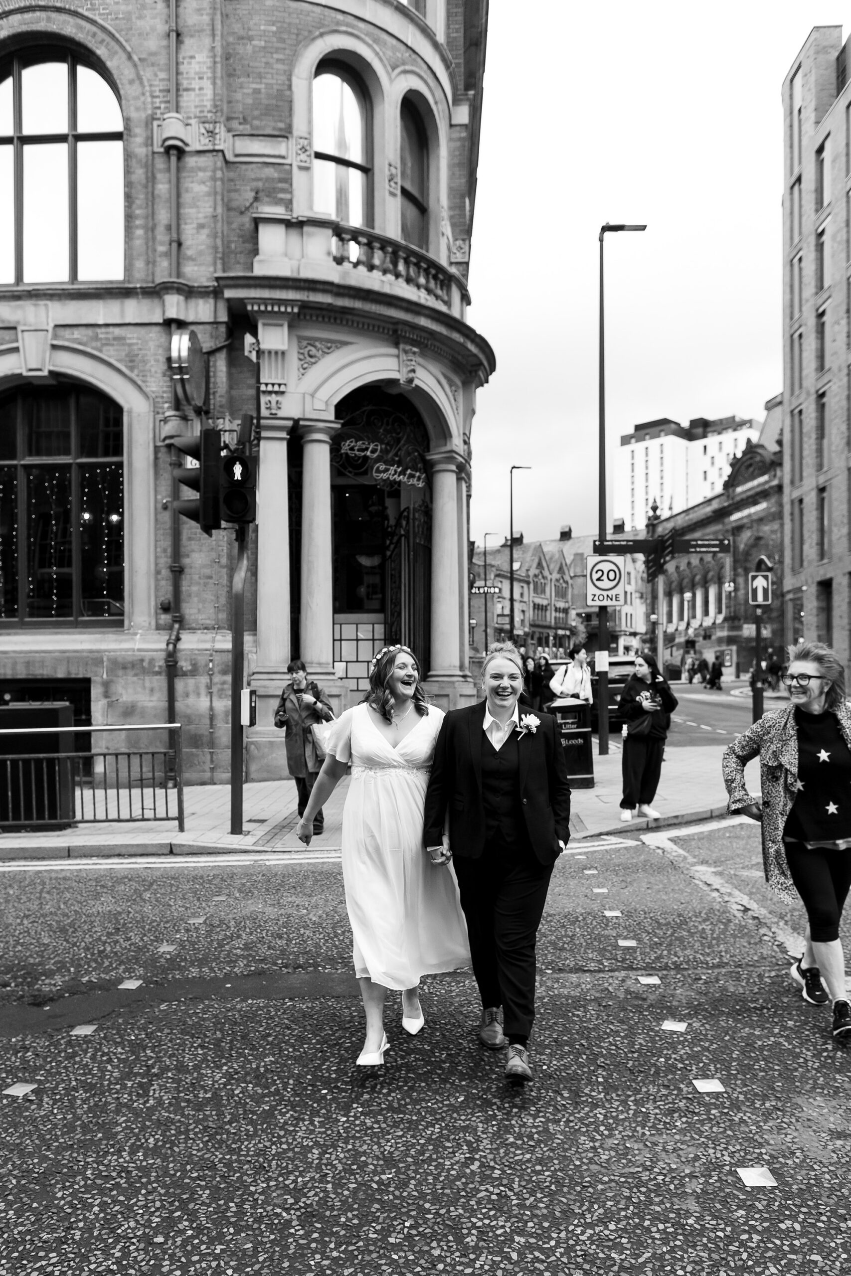 The advantage of getting married in Leeds City centre is that you can have endless options for your wedding photographs after your ceremony. The steps outside the Hall are a must! The architecture of the Civic Hall and space of Millennium Square just scream editorial. Then you’ve got urban city vibes as we head towards your reception.