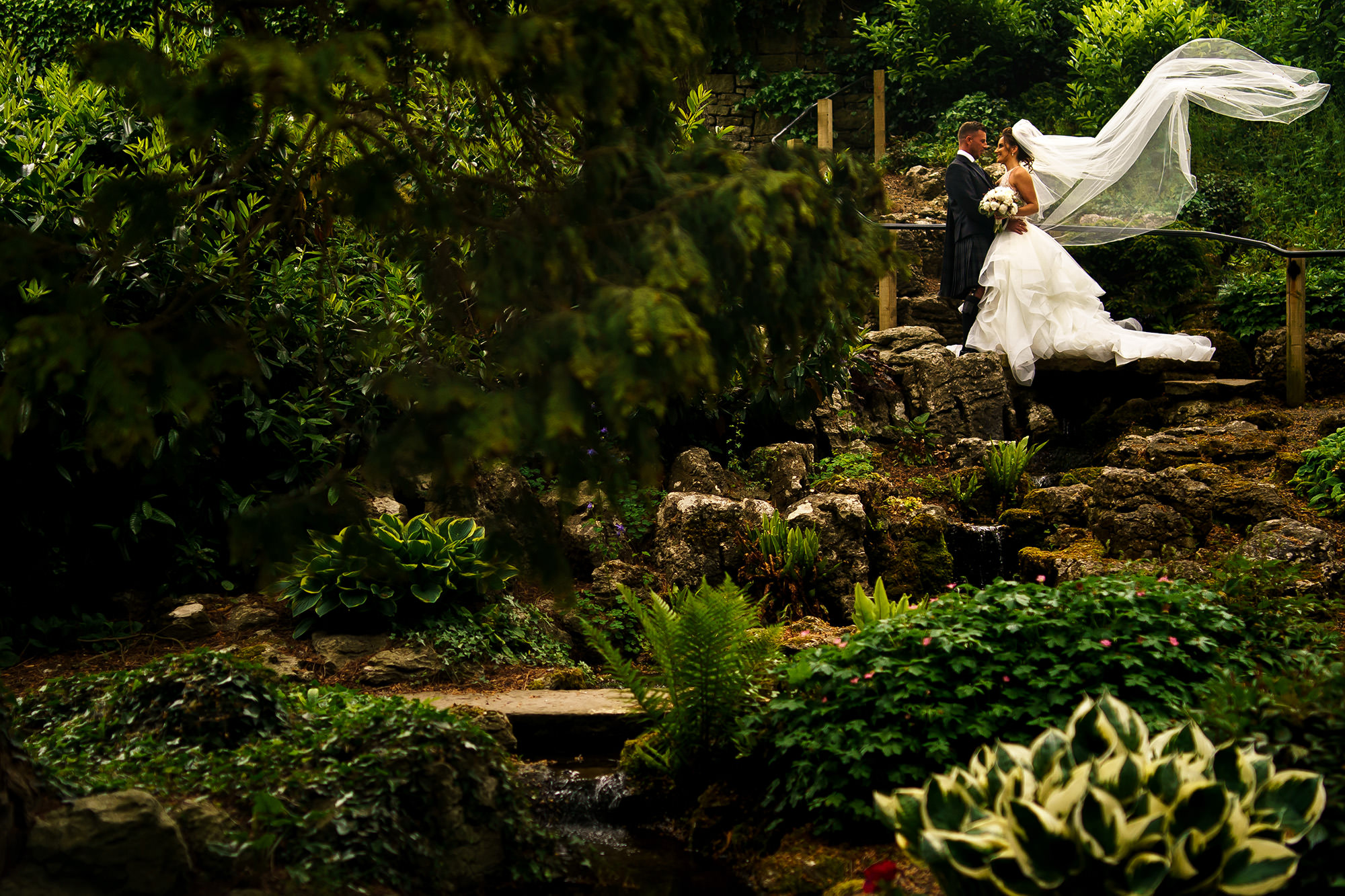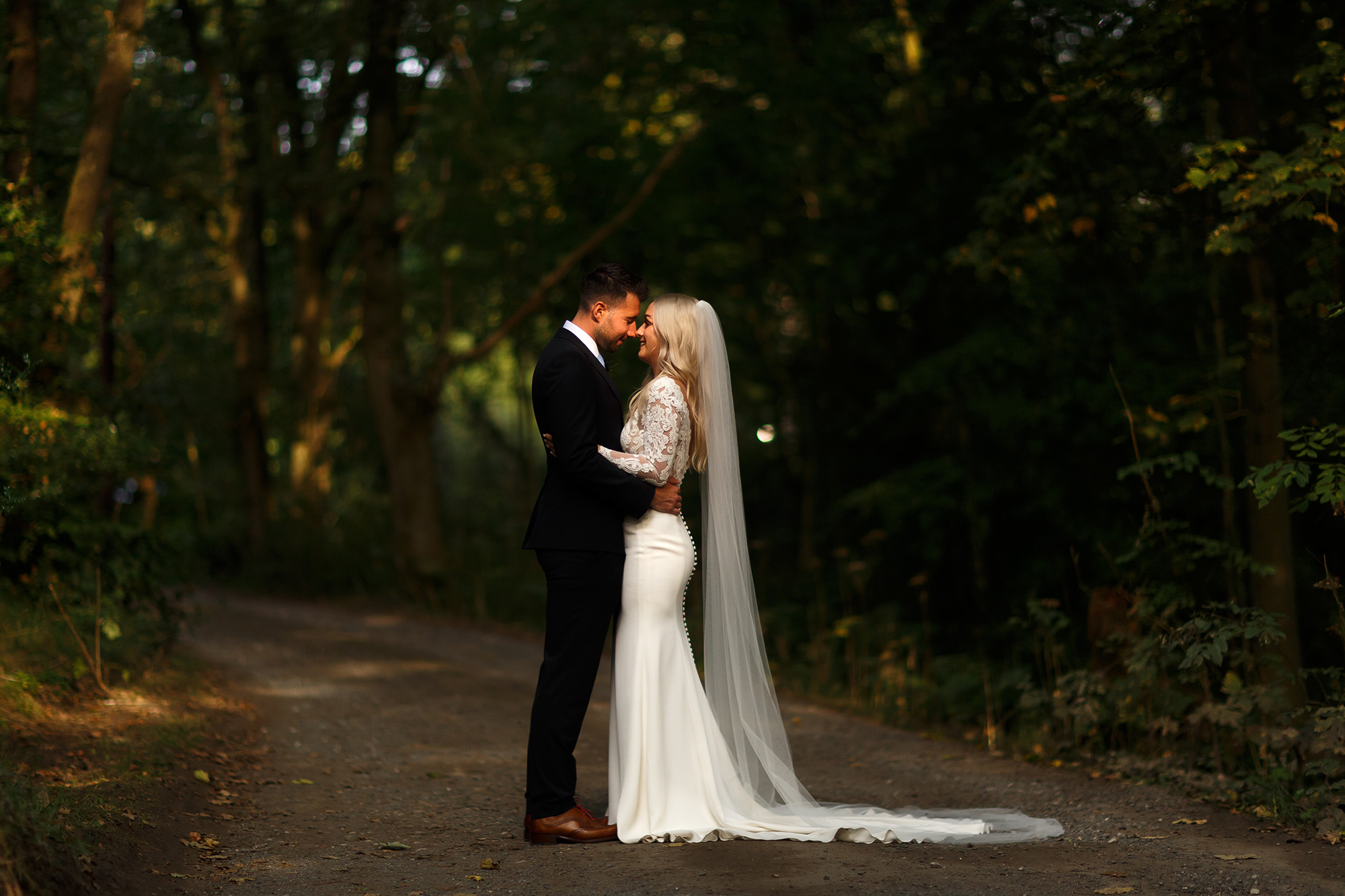 All of it documented. From the first quiet moments of the morning to the last of the evening. Including a couple shoot in the estate grounds, fifteen minutes in twenty-two acres of Lancashire countryside. The woodland, the gardens, Pendle Hill sitting in the distance. Not posed. Not performed. Just two people in one of the most naturally beautiful wedding settings in the north of England.
